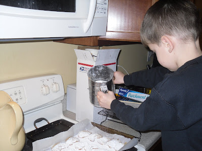 I often cook Austrian food. My family loves it. I don’t remember all the recipes I learned to make in Austrian Home Ec., but the ones that stuck with me are true gems. Although I’ve never tried a daily 3 a.m. baking marathon, I still enjoy incorporating Austrian cookies into my holiday season. This year we made the Vanilla Crescents. Our youngest son enjoyed working the sifter to give them all a good coating of powdered sugar.